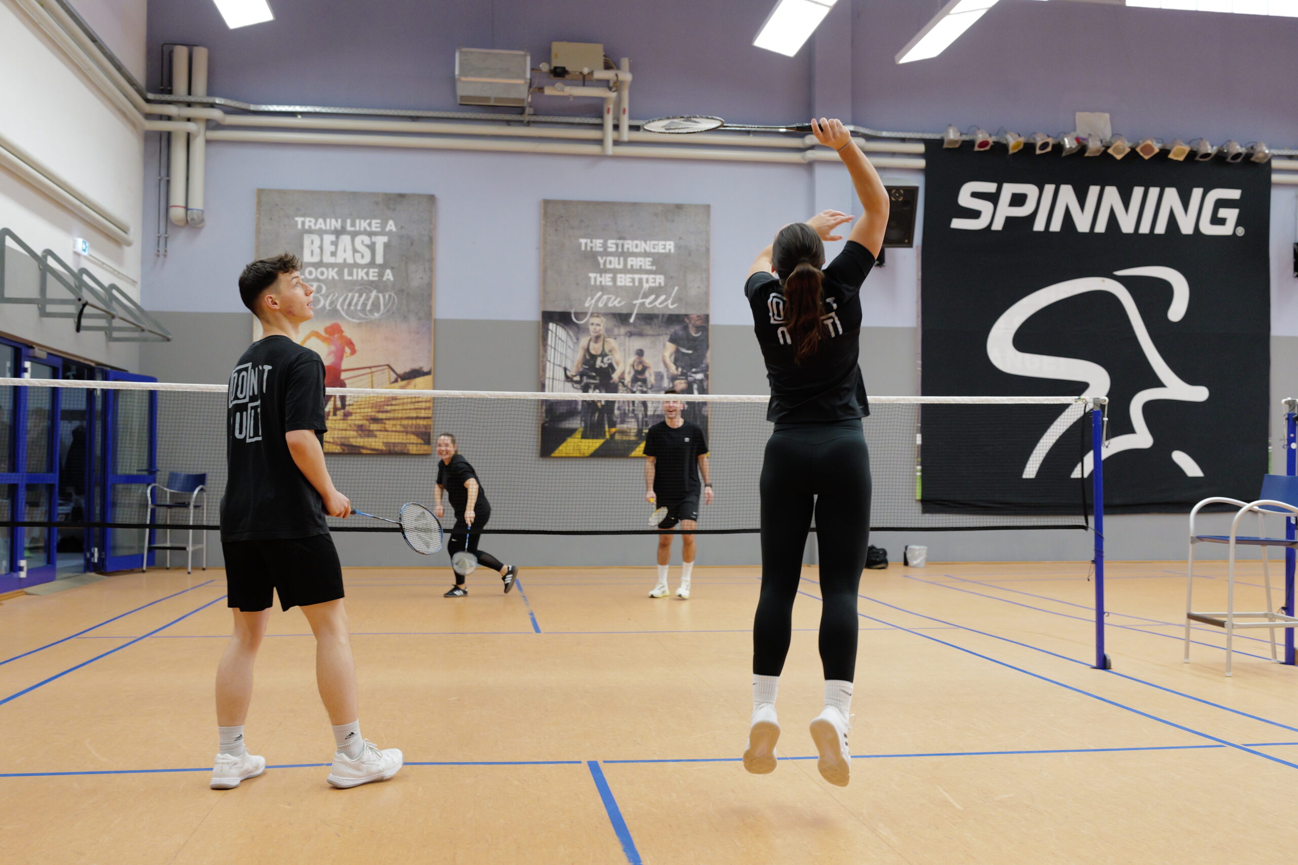 Wer Badminton im Rahmen der Mitgliedschaft abgeschlossen hat, zahlt nichts extra. Spielt ihr zu zweit, muss nur noch die Hälfte des Platzpreises bezahlt werden. Bei vier Spielern, von denen einer Mitglied ist, werden entsprechend drei Viertel berechnet und so weiter.