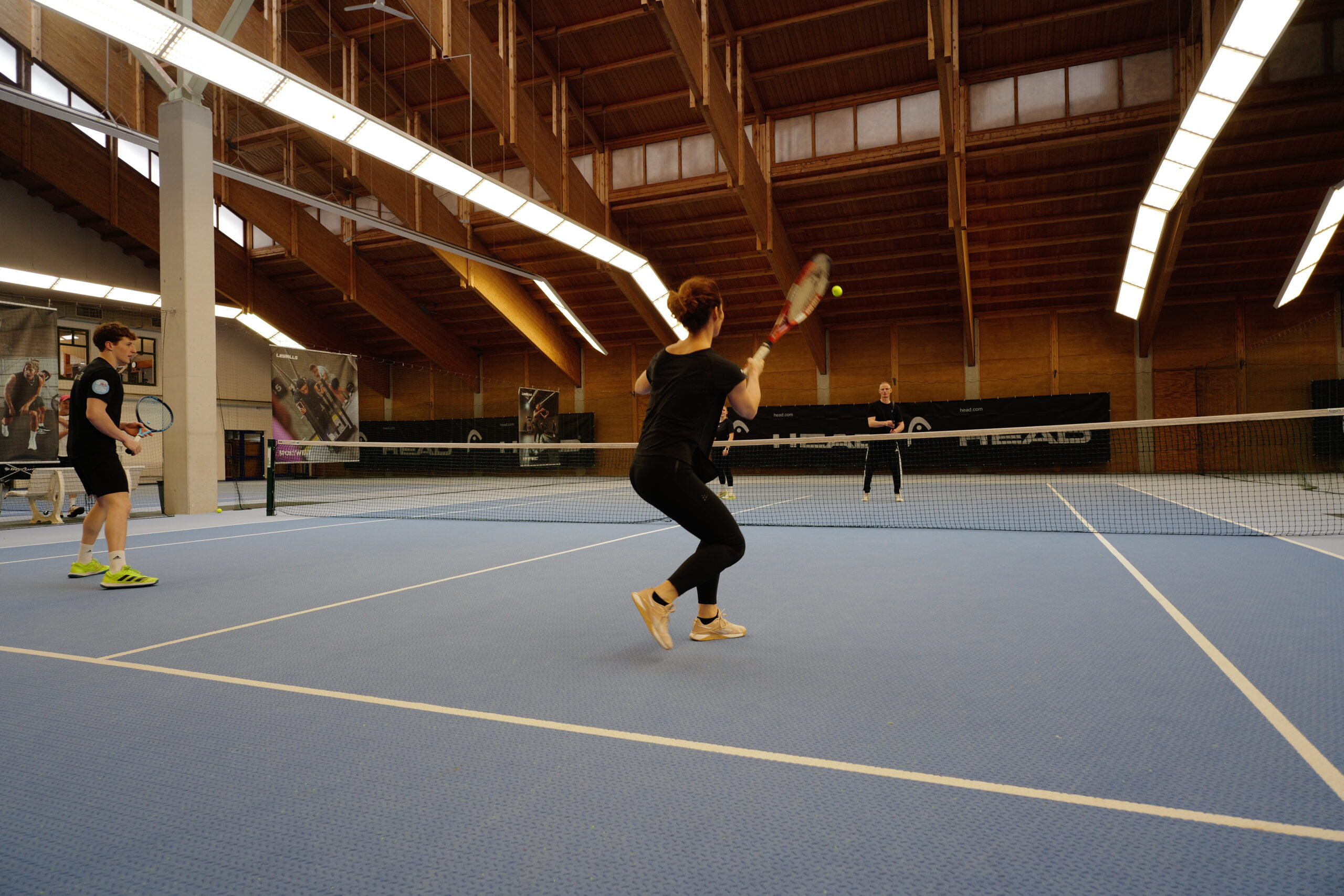 Unsere moderne 3-Feld-Tennishalle bietet ganzjährig beste Voraussetzungen für dein Spiel. Der hochmoderne „GRAND SLAM“ Teppichboden der Firma Schöpp sorgt mit über 256.000 Noppen pro Quadratmeter für gleichmäßigen Ballabsprung, angenehme Dämpfung und präzises Spielgefühl, ideal für lange, intensive Ballwechsel. Helle und gepflegte Plätze mit angenehmem Raumklima schaffen beste Trainingsbedingungen. Egal ob Einzel, Doppel oder Trainingseinheiten: Hier findest du alles, was gutes Tennis ausmacht.